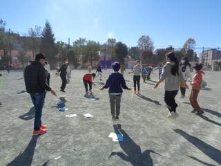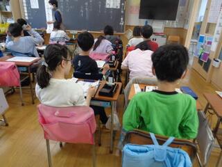 6年生家庭科「給食一食分の献立を考えよう」の授業で、栄養士が6年生4クラスに五大栄養素などについてお話をしています。