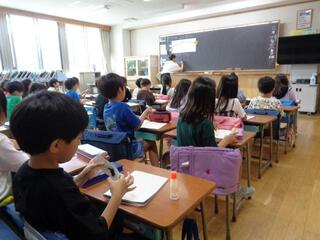3年生は自分の自転車で自転車安全教室に参加しました。警察署や市役所の方々、自転車の点検をして下さった方々、そしてたくさんの保護者の皆様にご協力いただきました。感謝申し上げます。