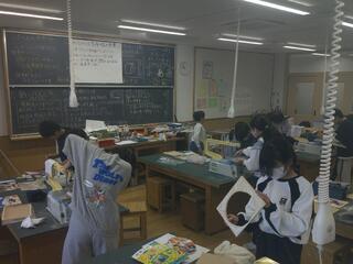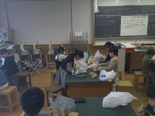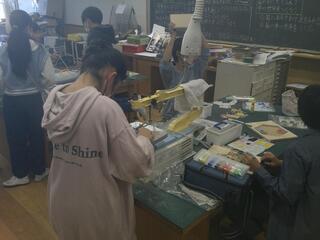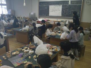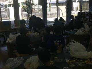 5年生 楽しいパズル一つ一つの部品がパズルになるように、電動系のこぎりを使って板を切りました。