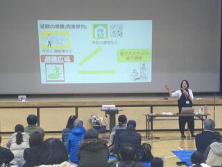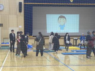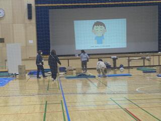 25日日曜日に、ひばりが丘公民館主催の防災講座「八方ふさがり冷や汗避難体験」が本校体育館で行われました。中原小学校避難所運営協議会が共催となり、約30名の近隣の方が参加しました。災害時に避難所となる中原小学校において、実際の災害の際に起こりうる「想定外」をゲーム感覚で体験しました。