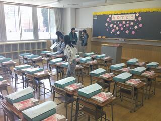 今日は、6年生が入学式準備にたくさん動いてくれました。掃除や机、椅子の移動、配布物の準備など、積極的に動いていました。さすが最高学年ですね。これからの6年生の活躍が楽しみです。