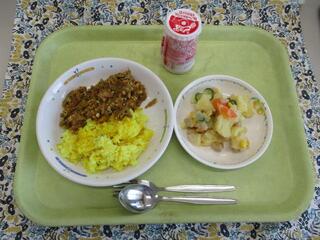1月9日(木曜日)ごぼう入りドライカレー・ポテトサラダ・発酵乳(ストロベリー)