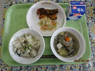 今日はつくし学級に行きました。にんじんやゆかりが苦手な児童もみんな、今日のごはんが気に入ったそうです。いかも「食べられたよ」「おいしかった」という感想をもらいました。1年生は、いかにかかっているソースがおいしかったようで、レシピを教えてほしいと言われました。「いかを食べると疲れがとれます」と言うと、「もう元気になったよ」と言って喜んで食べていました。今週も残暑が厳しいと予想されているので、食事はしっかりとってほしいと伝えました。