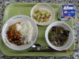 9月18日(木曜日) わかめごはん・ひじき入り卵焼き・鶏肉と野菜のあんかけ煮・牛乳