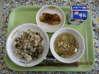 9月19日(金曜日) ごはん・豆腐の五目うま煮・キムチスープ・牛乳