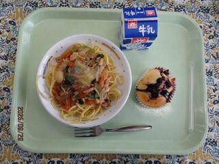 9月29日(月曜日) スパゲッティきのこソース・ブルーベリーマフィン・牛乳
