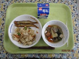 9月30日(火曜日) まいたけごはん・ししゃものスパイシーから揚げ・みそけんちん汁・牛乳
