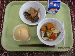 12月22日(月曜日)ゆずはちみつ蒸しパン・筑前煮・ほうとう汁・牛乳