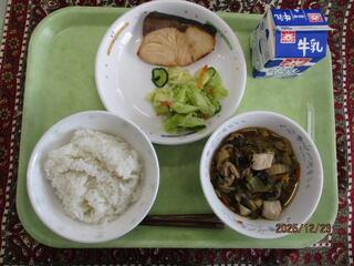 12月23日(火曜日)ごはん・ぶりの照り焼き・キャベツの香味和え・すき焼き風煮・牛乳