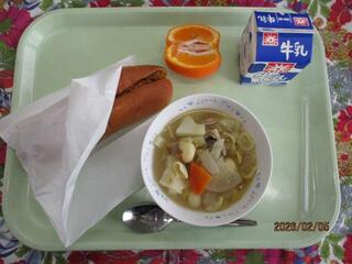 2月5日(木曜日)カレーミートサンド・冬野菜のポトフ・くだもの(ぽんかん)・牛乳