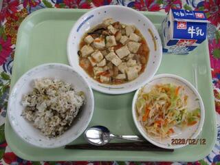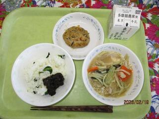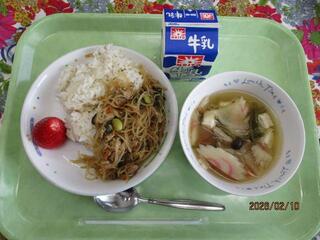 2月12日(木曜日)ごま菜飯・シャーレン豆腐・春雨サラダ・牛乳