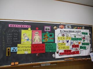 担任の先生と栄養士でTT授業を行いました。食べ物の名前あてクイズから、赤、黄、緑の働きについての学習をしました。給食には、全部入っていることを確認しました。これからも苦手なものであっても一口はチャレンジする気持ちを持ち続けてほしいです。