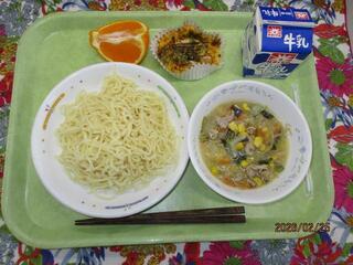 2月25日(水曜日)豚骨ラーメン・変わりとんぺい焼き・くだもの(デコポン)・牛乳