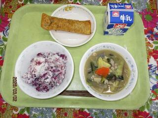 3月2日(月曜日) ゆかりごはん・ツナ春巻き・さつま汁・牛乳
