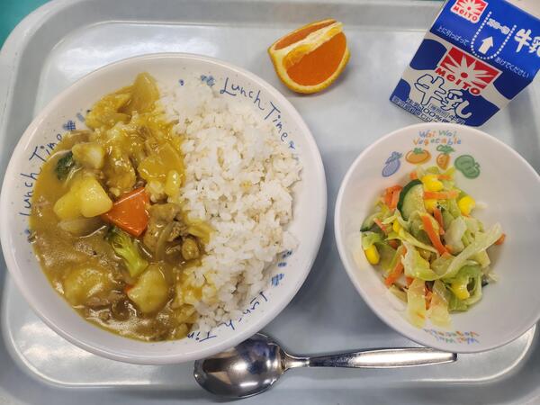 冬野菜カレーライス コールスローサラダ はれひめ 牛乳