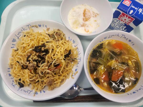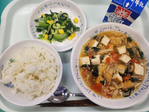 ごはん 中華煮 小松菜サラダ 牛乳