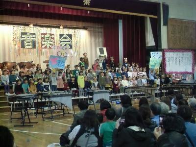 4年生 お囃子「お祭り」 合唱「未来見つめて」 合奏「ねこバス」