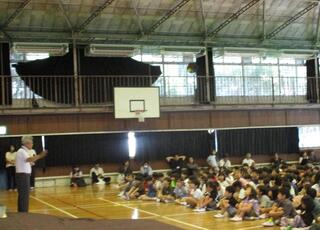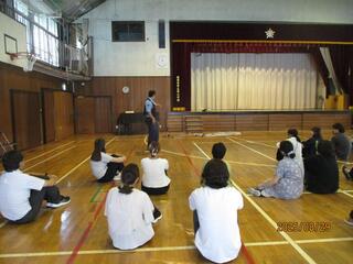 1・2年生向けのセーフティ教室を行いました。安全や防犯について、警察署の方に来ていただいてお話を聞きました。「いかのおすし」の防犯標語について教えてもらいました。