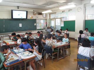 久しぶりのクラスのお友達との給食です。皆、楽しそうに食べていました。
