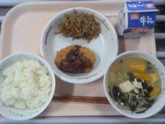 今日の「かぼちゃとベーコンのチーズ焼き」は、秋冬野菜を使っためぐみちゃんメニューです。6年生3名の作品です。コメントは「味付けは塩こしょう。かぼちゃとたまねぎの甘みが出て美味しいです。チーズはたくさんのせてください。」だそうです。