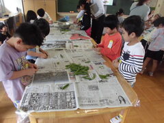 教室内がグリンピースのみずみずしい香りに包まれました。