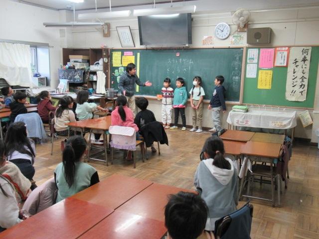 3学期になり、2年生も残りわずかの時間となりました。3年生になるとクラス替えもあるので、今日は他のクラスのお友達と交流をもち、「ステレオゲーム」をして楽しい時間を過ごしました。