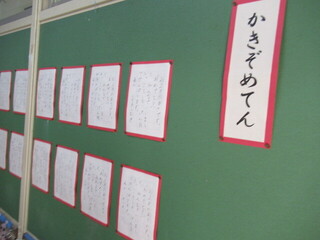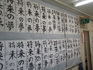 1月17日(金曜日)〜31日(金曜日)の間、席書会で書いた書初めを、各クラス廊下壁面に掲示しています。