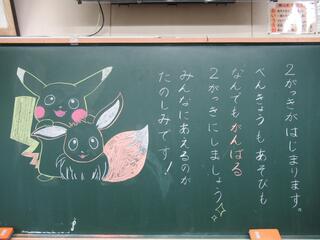 【1組】2学期のテーマは、「進化(しんか)」です。どこかに「進化(しんか)」の言葉が隠れています。どこかな?楽しい2学期にしましょう!