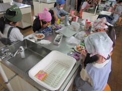 初回の活動では、各自好きなものを持参して、クラッカーにトッピングしました。