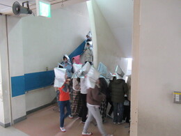 校内通報を聞いて、すみやかに避難開始!