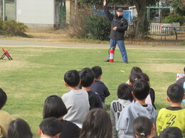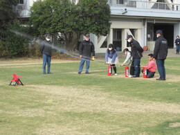 今回は消防署の方にご来校いただき、初期消火についてのお話を聞き、消火体験を実施しました。