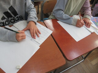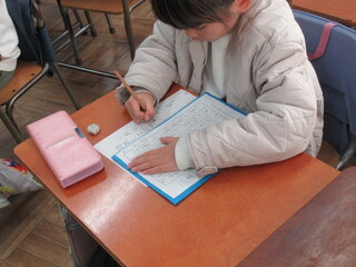 12月に入り、書き初めの練習を始めました。1年生の時に教わった姿勢を思い出しながら、取り組んでいます。書き初めは、消しゴムを使うことができません。お手本をよく見ながら、一文字一文字じっくりと集中して書くため、1枚書くだけでもヘトヘトです。冬休みの宿題で、練習用紙2枚と清書用紙3枚を持ち帰ります。休みの間にも、しっかりと練習ができるといいですね。3学期に、学校で書いたものを廊下に掲示します。1月の学校公開でご来校の際には、子どもたちの頑張りをぜひご覧ください。
