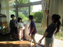 2年生は、当日に向けて班の仲間たちと集まり、リーダーが看板を持って並ばせる練習をしたり、班のめあてや遊びの内容を考えたりしました。