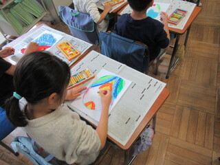 2年生の図工の学習が始まりました。今作っている作品は、クレパスや絵の具を使った、なんでも生まれる「ふしぎなたまご」です。