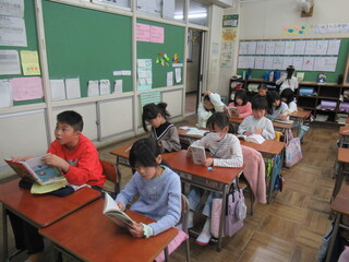 学級の時間には、一人一人本を選び、静かに読書をしました。図書委員さんが、読み聞かせに来てくれた日もありました。2年生の子どもたちは、時に笑ったり、つぶやいたりしながら、読み聞かせに夢中になっていました。