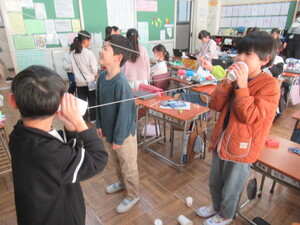 材料集めにご協力いただき、ありがとうございました。3学期にも、1年生と一緒におもちゃ作りを行います。