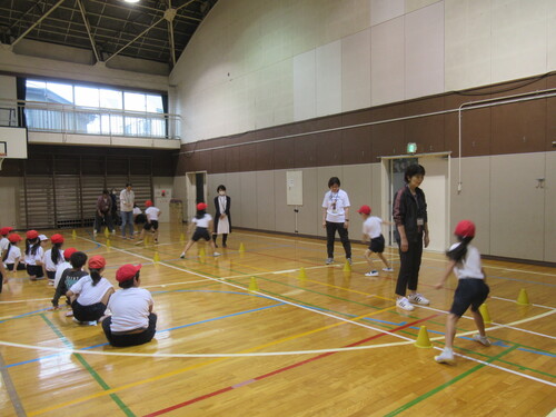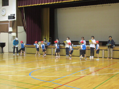 体力測定の種目は「上体起こし」「長座体前屈」「50m走」「立ち幅跳び」「ソフトボール投げ」「反復横跳び」「握力」「20mシャトルラン」でした。地域のボランティアのみなさんのお力もお借りして、計測を行いました。