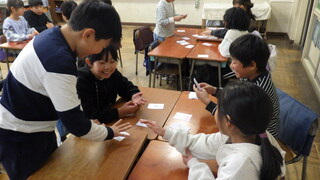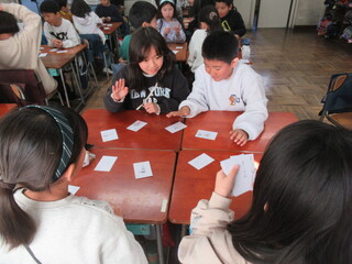 国語の学習で「音訓かるた」を作成しました。子どもたち一人一人が、同じ漢字の音と訓を使ってリズムのよい歌を考えました。また、それぞれが作成したものを使ってかるた大会も行いました。
