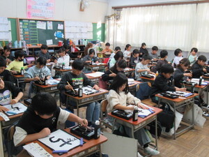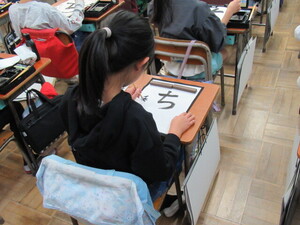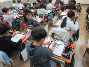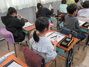 3年生は、これまでの練習を活かし書初めの練習をしました。
