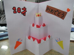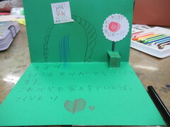 4年生は、贈りたい相手を想いながらカードを製作しました。だれに、どんなメッセージを贈るか、伝えたい相手に合わせてメッセージも考え、素敵なカードが出来上がりました。