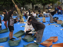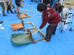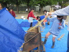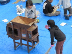 5年生が育ててきたお米が出来上がり、校庭で脱穀作業を行いました。昔ながらの脱穀方法で、唐箕(とうみ)などの昔の道具を使って、作業をしました。普段は体験できない貴重な体験と、自分たちで一生懸命育ててきたお米の大切さを、改めて理解しました。。