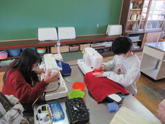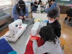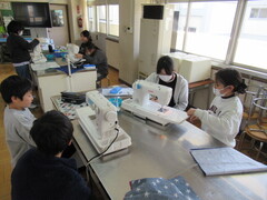 家庭科「ミシンにトライ!」の学習で、ランチョンマットを作っています。上糸をかけて、下糸を引き出して・・・回数を重ねるうちに扱いに慣れてきて、ミシンの準備が上手くなっています。不安なところは友達と支えあいながら、慎重に縫い進めていた子どもたち。