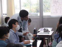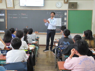 ALTの先生の授業では、身の回りの物がどこの国から来たのかを、聞いて、書いて、学習しました。ティーチャーの授業は、丁寧でとてもわかりやすく、楽しく外国語を学んでいます。