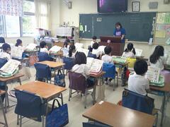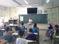 住吉小学校では、3年生と4年生に、学校特別非常勤講師による外国語指導を取り入れています。今日は、3年生が、アルファベットの学習をしていました。先生の発音に合わせて声を出したり、スペルの形と読み方を確認したりしました。外国語に親しみをもって、意欲的に学習をしていました。