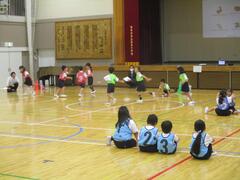 2年生と4年生が、合同で体育の授業をしていました。今日は、「住吉スポーツDAY」に向けて、「なかよしペア学年団体競技」の練習をしていました。異学年交流活動の一環としても、今年度新たに取り入れた種目です。
