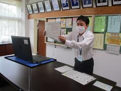 今朝は、校長室で、タブレットを使った「リモート全校朝会」を行いました。校長先生からは、「ふれあい(いじめ防止強化)月間(アンケートや児童面談の実施など)」と「熱中症事故等の防止(水筒、帽子、汗ふきタオルなど)」、「登下校の安全(飛び出し注意、自転車による交通事故防止など)」について話がありました。子どもたちの健康、安全、安心を第一に教育活動を進めていくことを、教職員一同も再確認いたしました。ご家庭でも、昨日配布しました学校だよりに記載があります「登下校のしかたについて」を参照していただき、子どもたちへの声かけをお願いいたします。