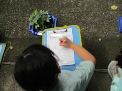 【6月28日】4年生が、「緑のカーテン」の記録をまとめていました。