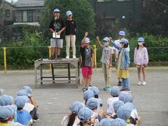 今日は、1年生も初めて防災頭巾を被って、校庭に避難する訓練を行いました。上の学年の子どもたちがお手本になって、全学年で正しく行動することができました。災害は突然起きますが、これから暑くなってくると、大雨や落雷に見舞われることもあります。どんな時も指示をしっかり聞いて、落ち着いて行動できるように、毎月訓練に取り組んでいきます。