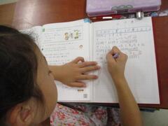 2年生が、算数の授業をしていました。今日は、「100より大きい数をしらべよう」の単元で、カードを並べて数を表し、数字の書き方も学んでいました。お隣の友達と確かめ合いながら、学習を進めていました。