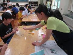 5年生が、家庭科室で調理実習をしていました。はじめに、先週の授業で計画した手順等をしっかりと確認し、衛生面に十分に気を付けた準備(身支度、手洗い、食材や調理用具の確認など)をしていました。次に、食材を洗った後、じゃがいもの皮をむいたり、包丁を使って食材を切ったりしていました。また、火加減に気を付けながら、食材をゆでていました。友達相互にアドバイスし合い、安全に気を付けて活動していました。最後は、自分たちが調理した料理を食べ、食器などを丁寧に洗っていました。今日の経験を生かして、ご家庭でご家族と一緒に料理づくりを楽しんでみてほしいと思います。